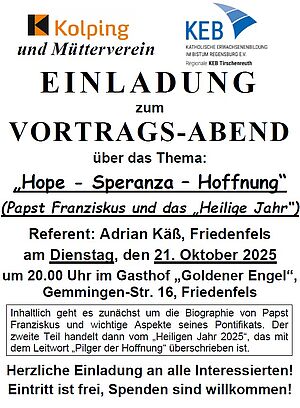 Veranstalter | Kolping + Mütterverein Friedenfels, KEB Tirschenreuth |